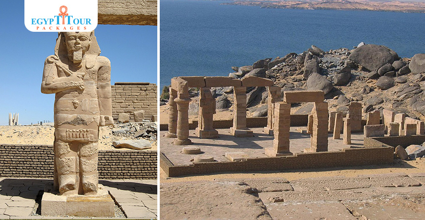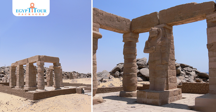 The temple of Gerf Hussein (in Ancient Egypt: Per Ptah or House of Ptah) was dedicated to pharaoh Ramesses II and built by the Setau, Viceroy of Nubia. Situated on a bank of the Nile some 90 km south of Aswan, it was partly free-standing and partly cut from the rock. It was dedicated to "Ptah, Ptah-Tatenen and Hathor, and associated with Ramesses, 'the Great God. Originally, it was partially free-standing and partially rock-cut. During the flooding of Lake Nasser, the free-standing section was dismantled and then rebuilt at New Kalabsha. Most of the rock-cut temple was left in place and is now submerged beneath the waters.
