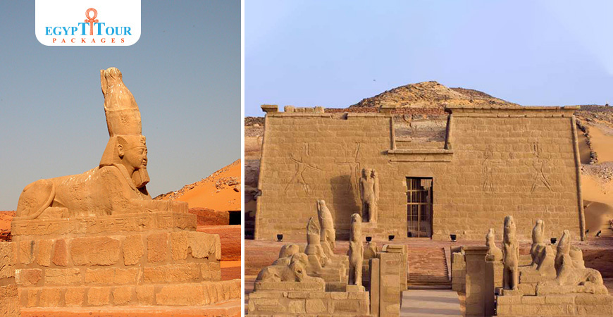 temple of Wadi Es-Sebua is located 50km south of Aswan Dam. This temple was built by Ramesses II and was dedicated to the god Amun and Ra-Horakhty.